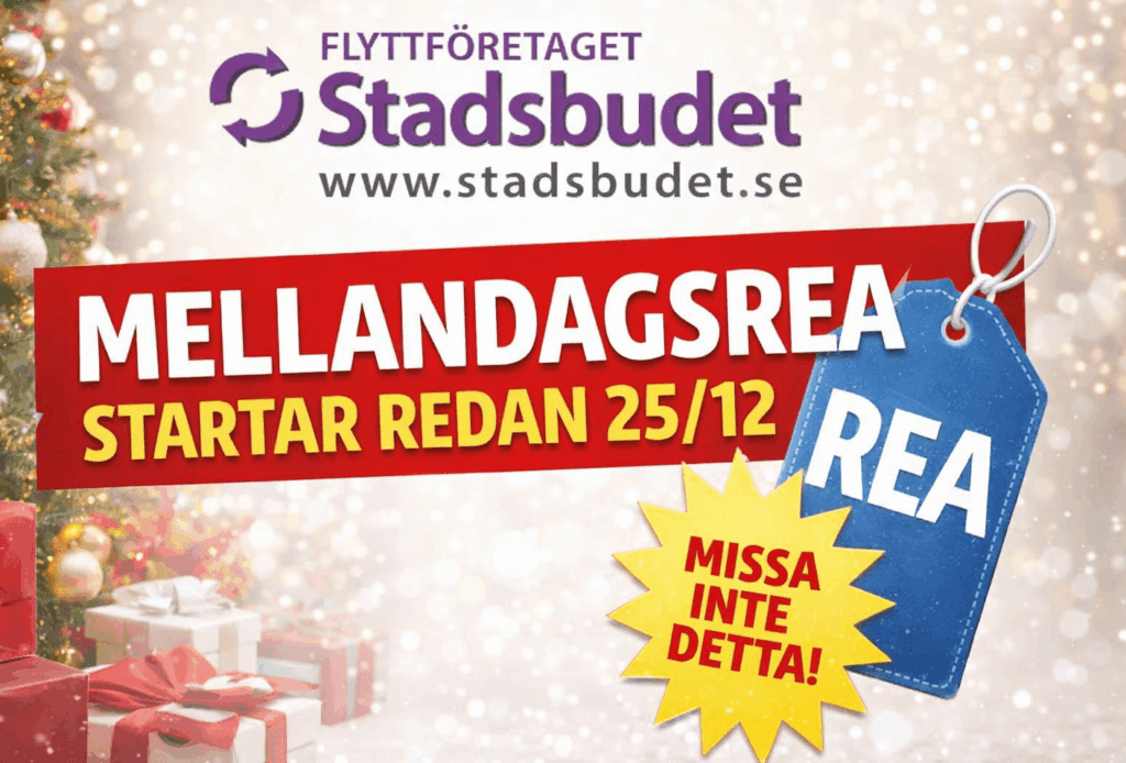 Planerar ni att flytta inom eller till Stockholm? Då är det rätt tid att boka er flytt. Flyttföretaget Stadsbudet Stockholm lanserar nu sin populära mellandagsrea på flytt, med rabatterade priser för bokningar som sker från 25/12 2025 till och med 11/01 2026. Erbjudandet gäller i mån av plats – först till kvarn,dock så fällerdet för flytt under hela året.